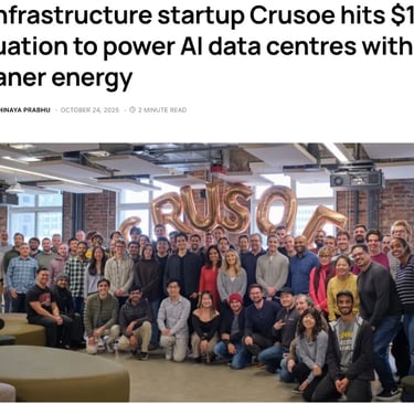 U.S. company Crusoe Energy Systems raised $1.38 billion in its Series E round, bringing its valuation above $10 billion.